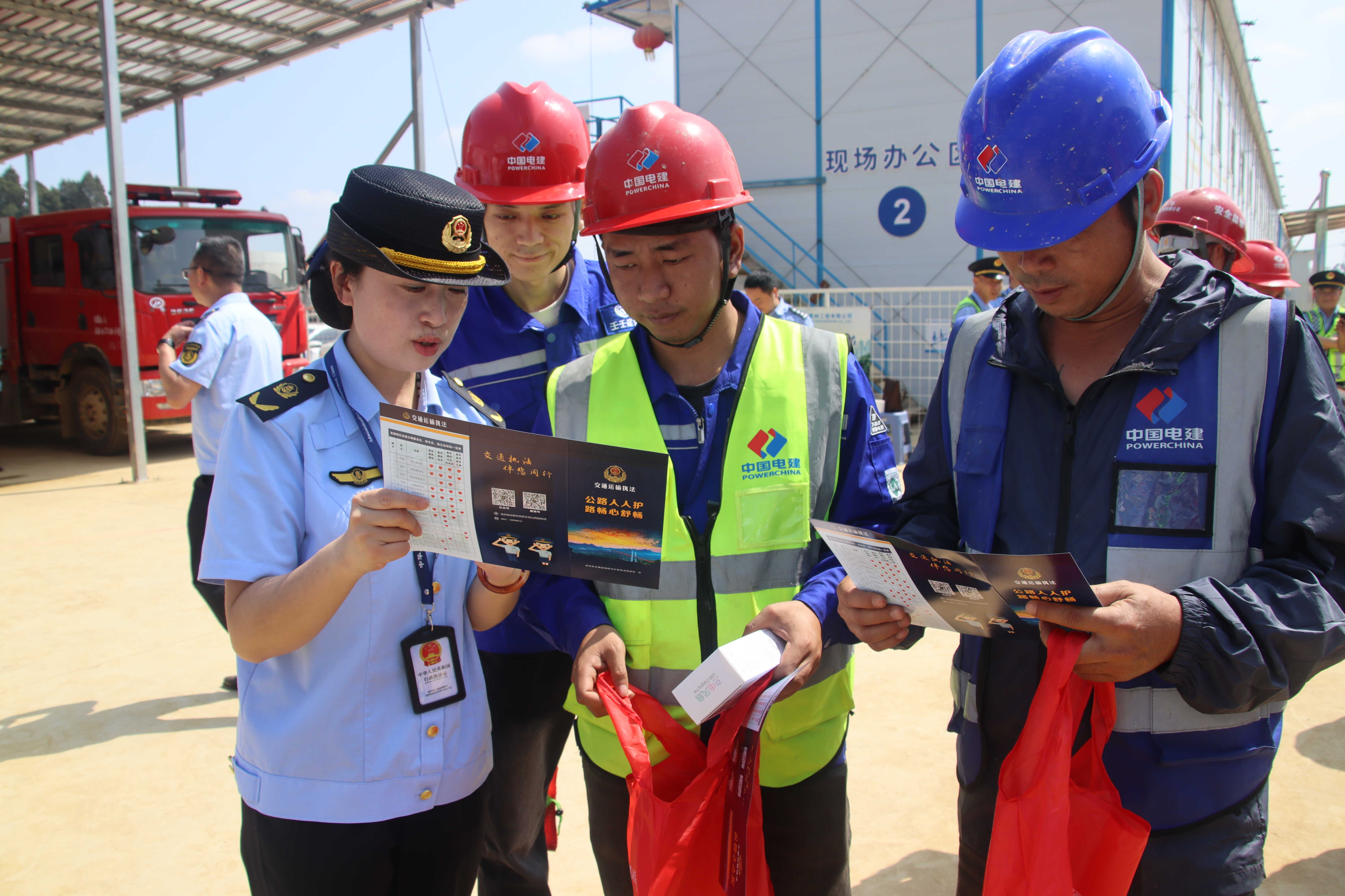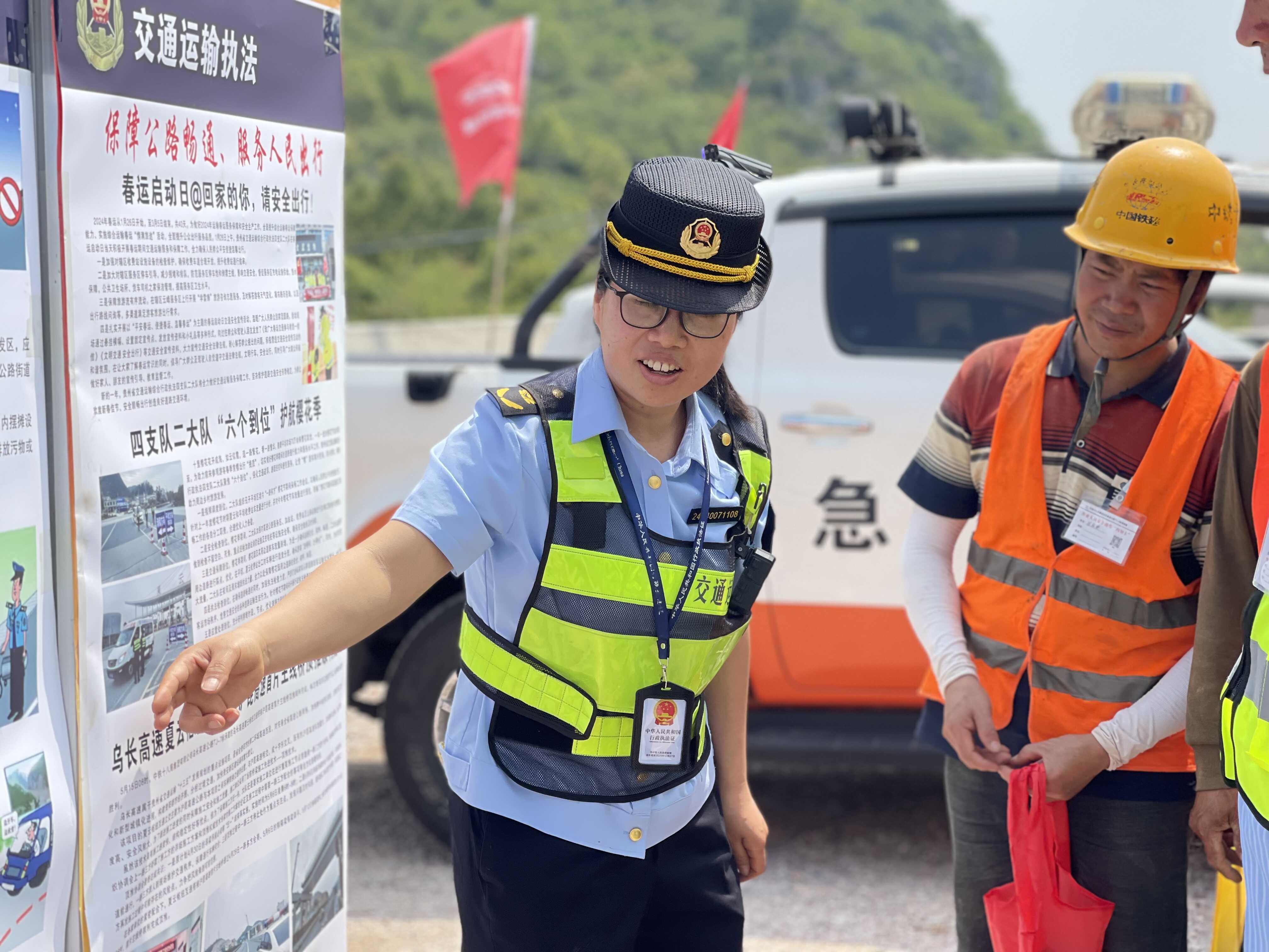 郑怡向施工人员宣传爱路护路知识