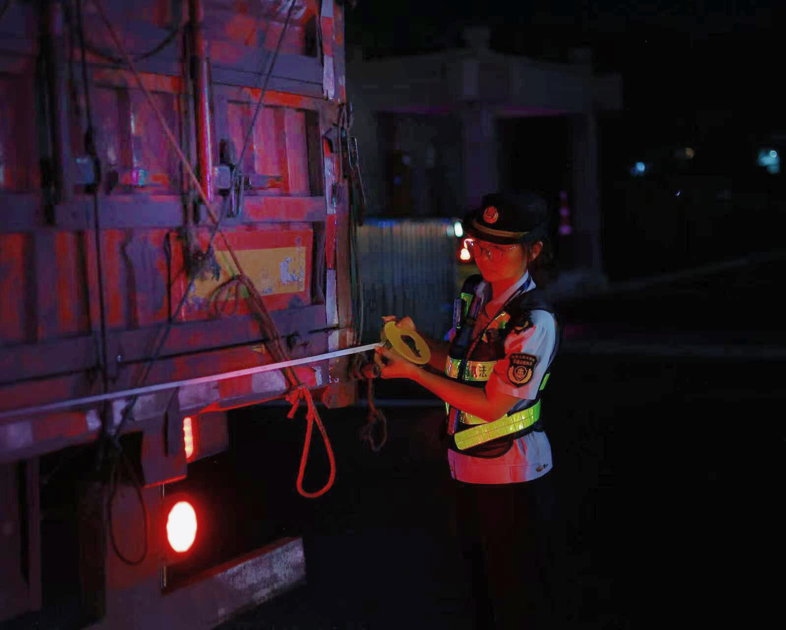 她是夜间执法的无畏先锋。一大队开展夜间专项行动,褚永杰赫然在列——她主动请缨,与男同事并肩作战,顶寒风、熬大夜、守卡点。治超现场车辆核查、称重检测,非法营运蹲守布控、现场取证,她始终用专业与果敢直面复杂现场。