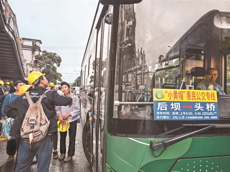 2025年7月1日,贵阳的“小黄帽惠民公交”专线开通了。每天6点20分、6点30分准时发车(共计2班),主要服务民工乘客。这条专线的起点站在后坝,一路开向头桥2分站。如今,“小黄帽”专线日均乘车人数50至70人,后坝等地的务工人员可以及时进城、顺利上岗。