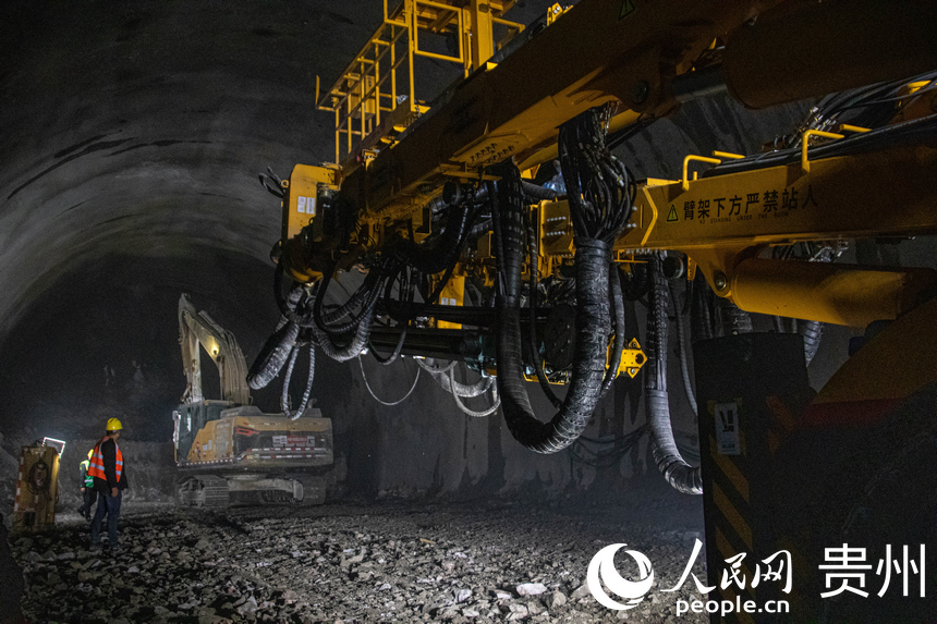 定位、钻孔、掘进……3月10日,位于贵州省铜仁市碧江区的铜岩隧道施工正酣,三壁凿岩台车机械轰鸣,精准破岩,为铜吉铁路建设按下“加速键”。