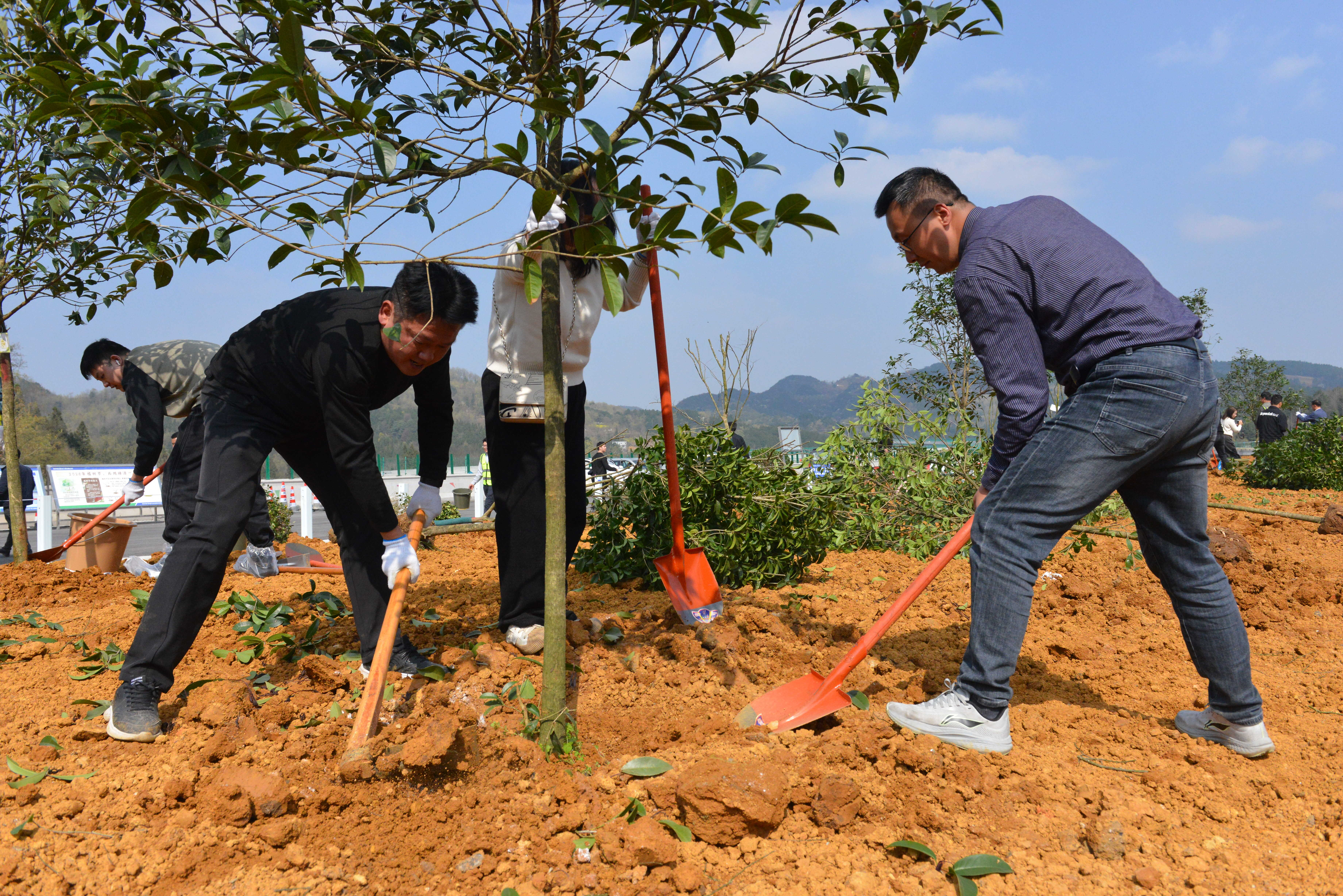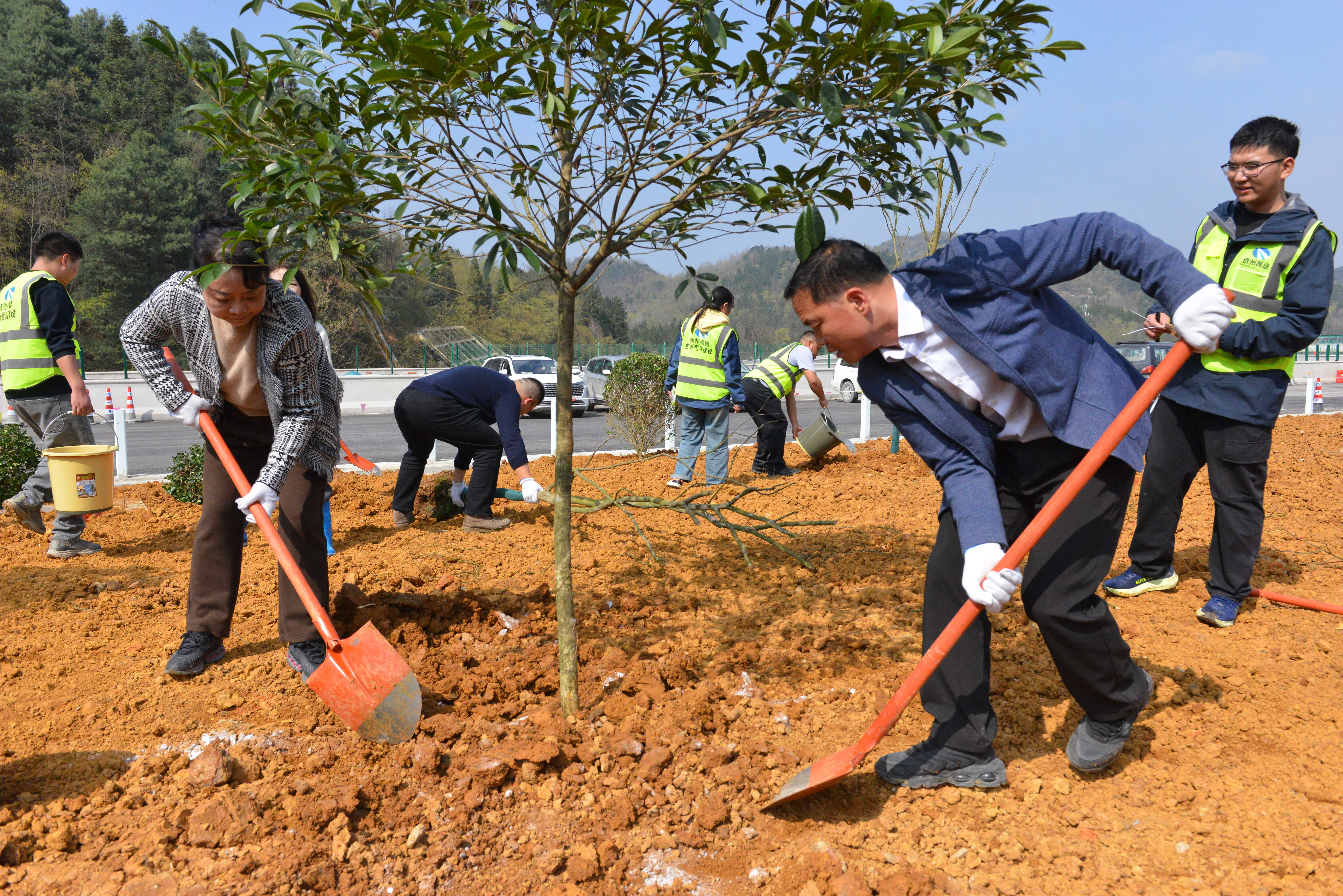 挥锹添新翠,植绿正当时。3月11日,在第48个植树节到来之际, 十大网络赌博网站排行组织系统干部职工到贵阳至安顺高速公路扩容项目清镇北互通区开展主题为“厚植生态根基,巩固发展优势”的植树节活动。