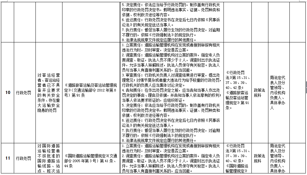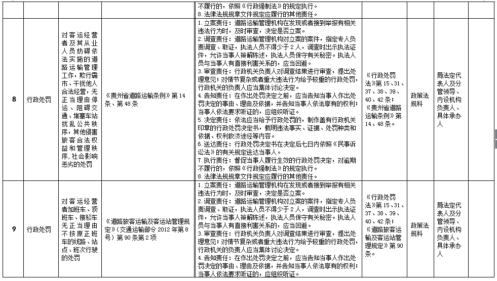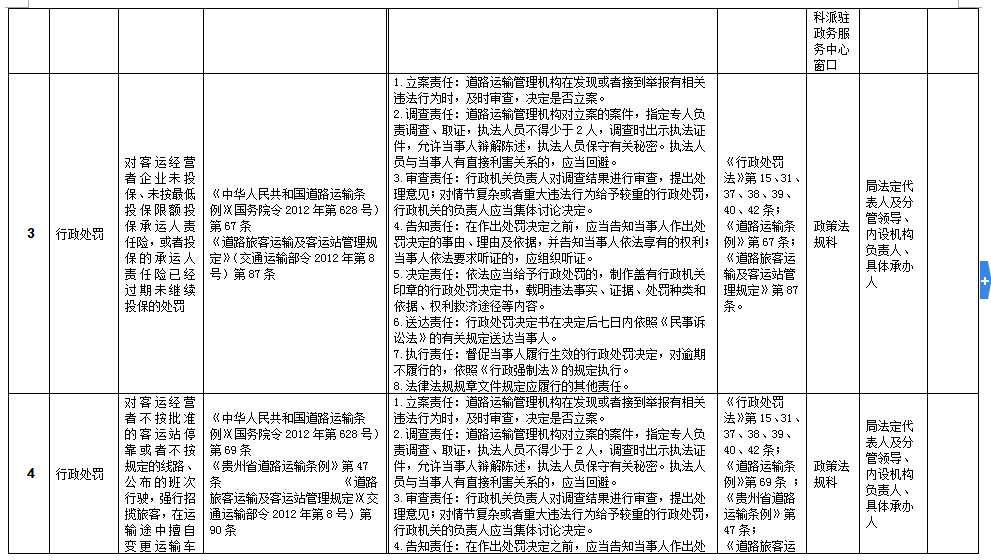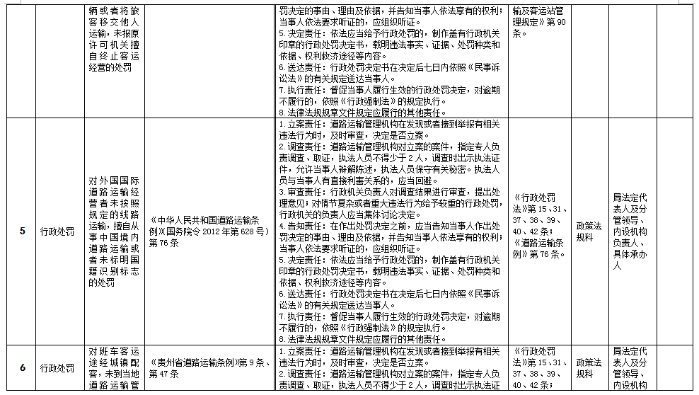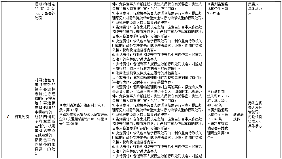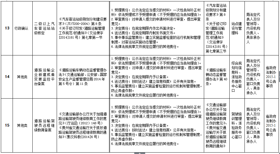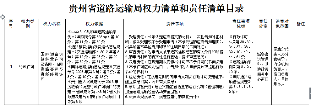 贵州省道路运输局权力清单和责任清单目录
