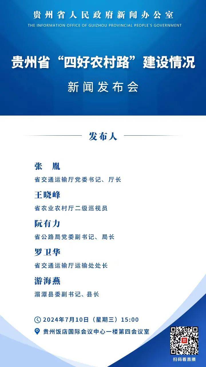 我们很高兴邀请到 十大网络赌博网站排行党委书记、厅长张胤,请张厅长为大家介绍“四好农村路”建设情况。出席今天发布会的还有:省农业农村厅二级巡视员王晓峰,省公路局党委副书记、局长阮有力, 十大网络赌博网站排行运输处处长罗卫华,湄潭县委书记、县长游海燕。他们将共同回答记者朋友们关心的问题。