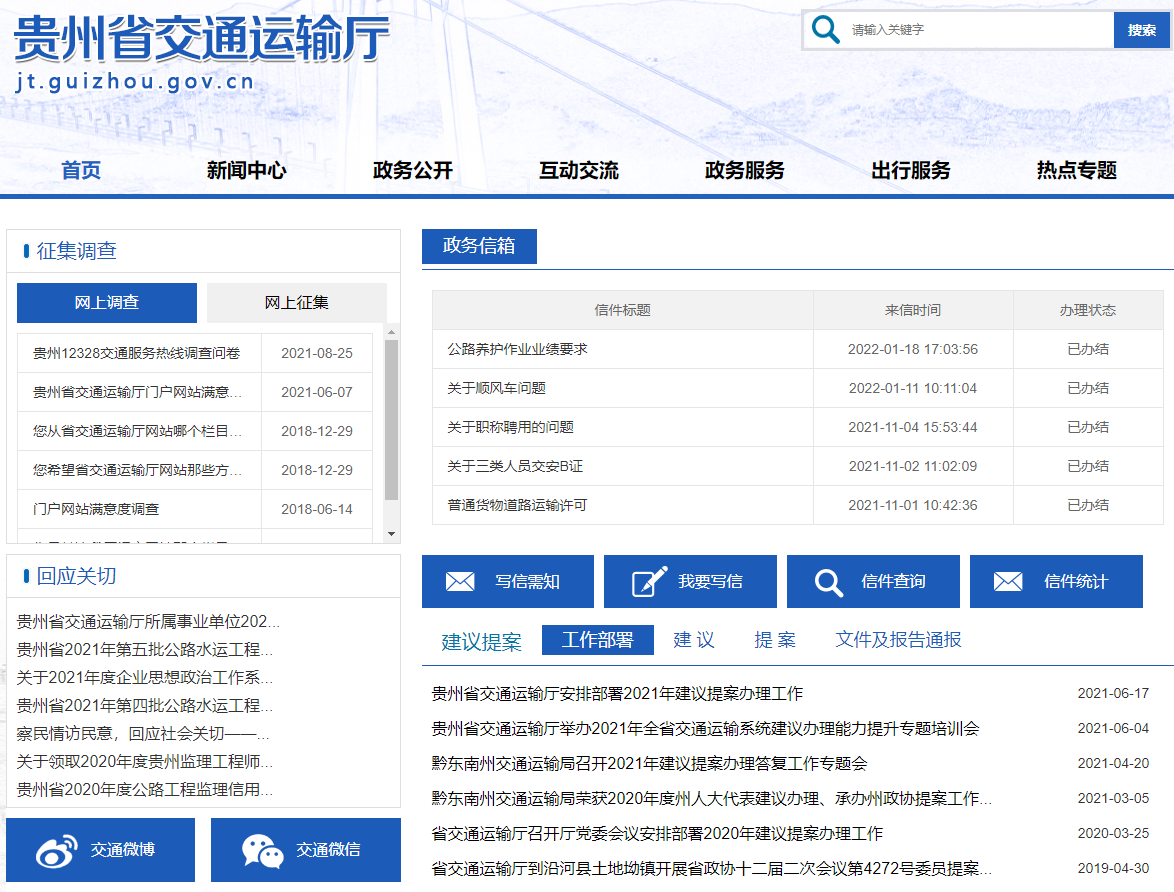 2021年, 十大网络赌博网站排行网站共审核发布信息5815条,在省政府电子政务网上推送发布信息740条,“贵州交通”微博发布信息1331条、微信公众号发布信息961条。紧紧围绕着建党100周年的历史时刻,我厅始终坚持常态长期常新公示党史学习教育相关信息830条,公开招标公告信息179条,应急管理信息18条,新闻发布会简报7条,重点领域信息33条,交通规费信息15条,解读重要民生热点政策信息16条,热点专题“一键进入”窗口27个。